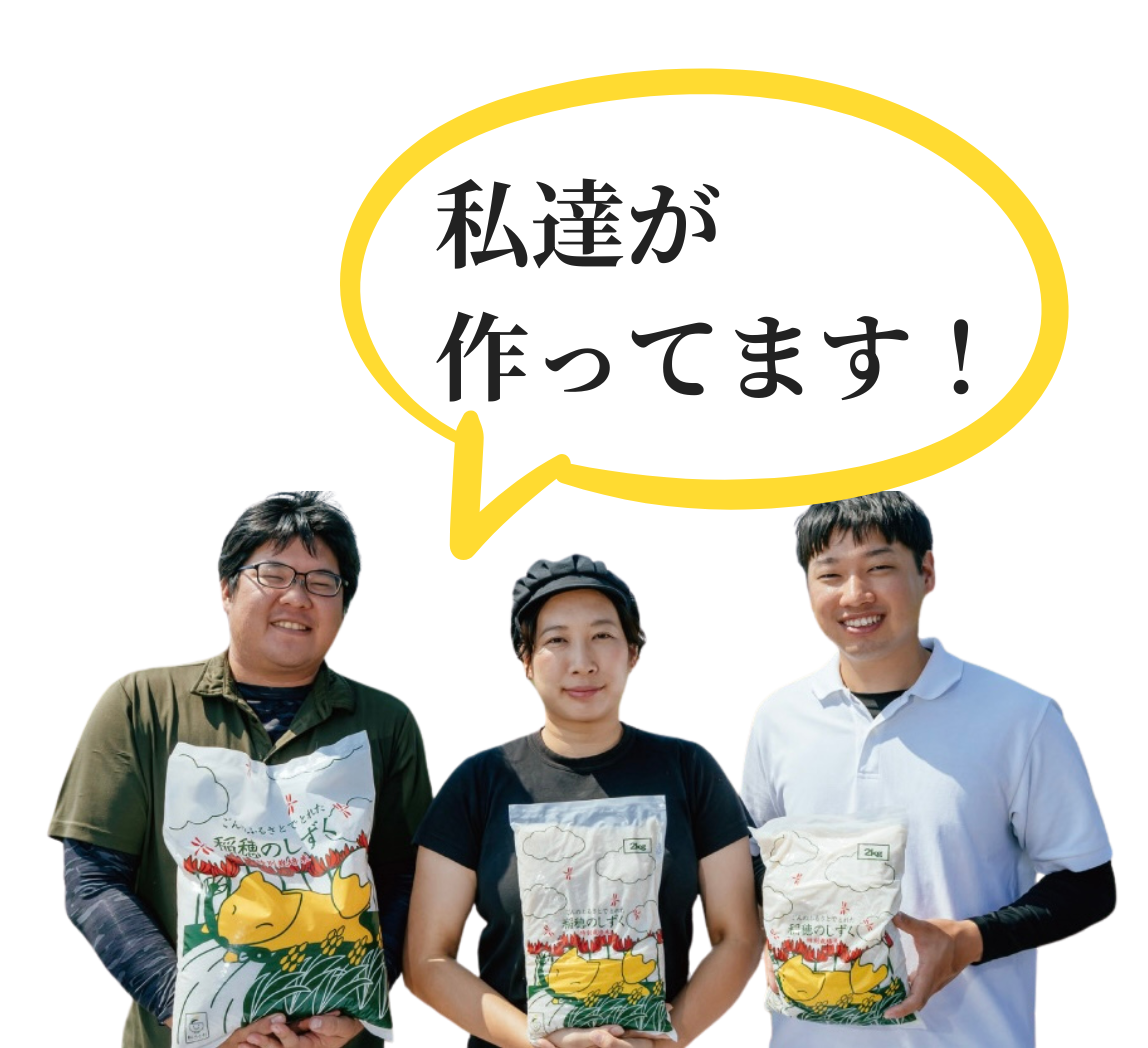 生産から加工、管理、販売まで、私たち農家が行うことで安心・安全に食べられるお米作りをしています。