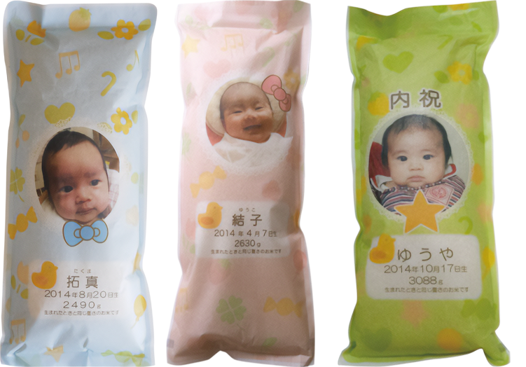 またおいしい村が認めた栽培方法などを採用している契約農家さんのお米も販売しています。家族や地域のコミュニケーションのきっかけに「出産祝い米」や「オリジナルデザイン米」などのパッケージ商品も企画しています。